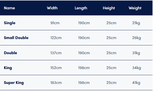 Small Single - 2'6" x 6'3" - 75cm x 190cm